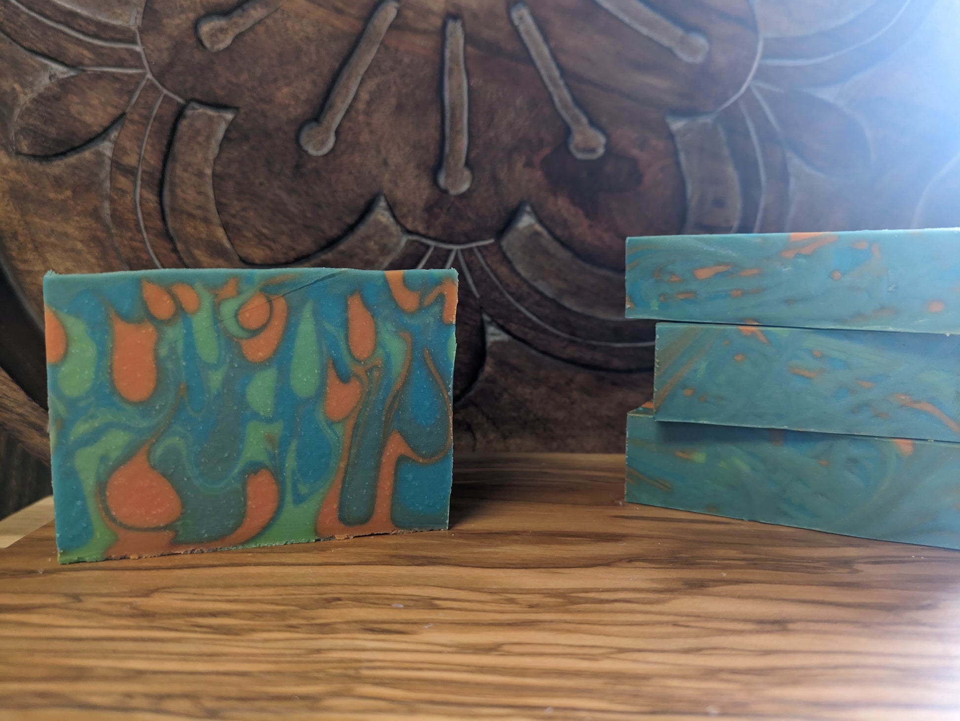 Olive Oil, Distilled Water, Sodium Hydroxide, Castor Oil, Coconut Oil Kaolin Clay and Mica Colorants